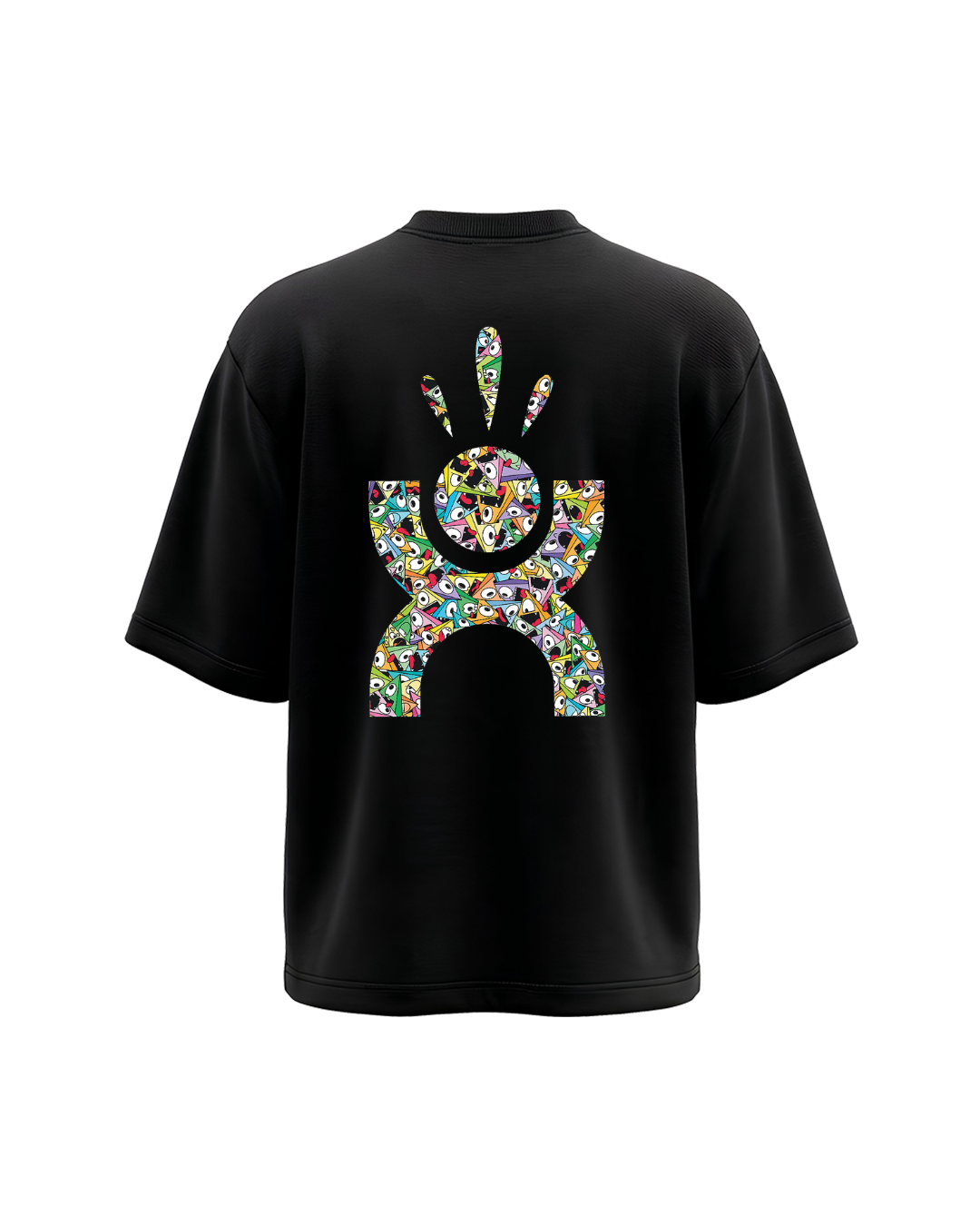 Na parte frontal, o modelo traz o símbolo minimalista da Magic Moments em formato clean. Já nas costas, o destaque fica por conta da clássica figura da logo do artista Phaxe reconstruída com um mosaico cheio de cores de ilustrações coloridas que são ilustrações de Christian Pras.