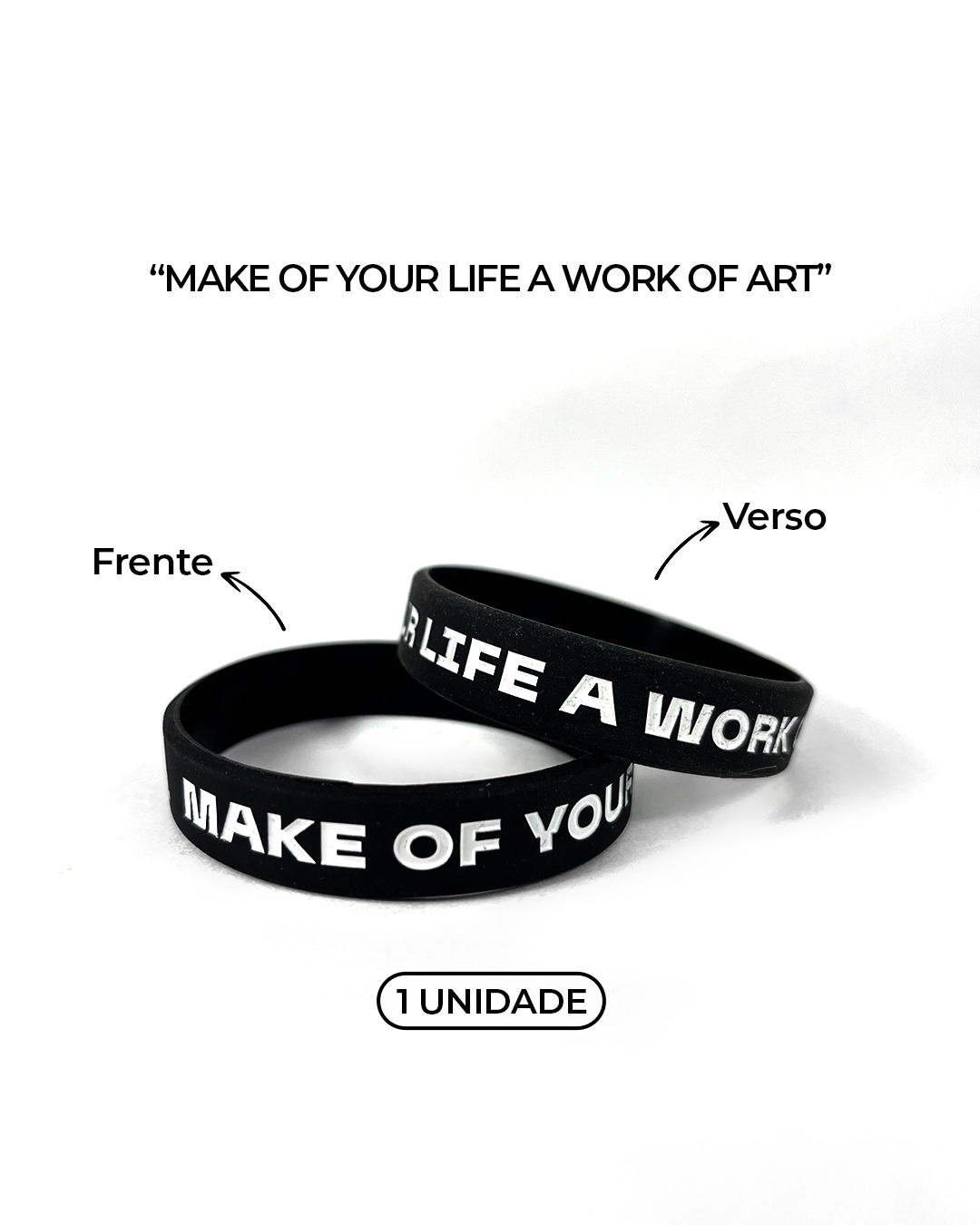Com a frase que já virou assinatura do Becker, essa pulseira traz um lembrete diário: Faça da sua vida uma obra de arte. Um acessório minimalista, mas cheio de significado.